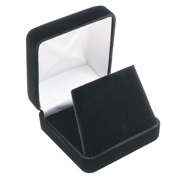 Black Velvet Jewelry Pendant Gift Boxes. Measuring 2-5/8" x 2-5/8" x 1-3/8" tall, making item YP9 BK a great pendant box for shipping, gifting and packaging your jewelry. Available for printing, allowing you to add your logo and brand your jewelry boxes. Tiered pricing does apply.