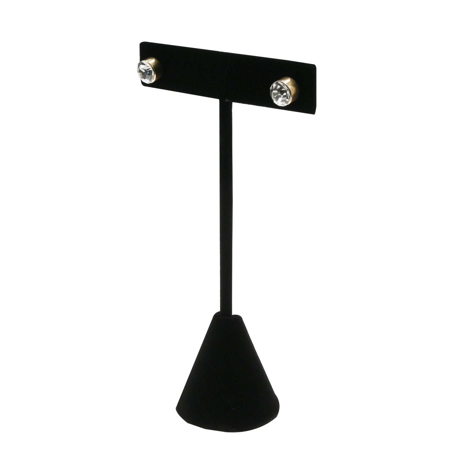 Showcase your earrings with elegance using this compact black velvet T-stand. Perfect for creating dynamic, multi-level displays or highlighting featured pairs, this weighted stand combines boutique-quality presentation with practical stability.