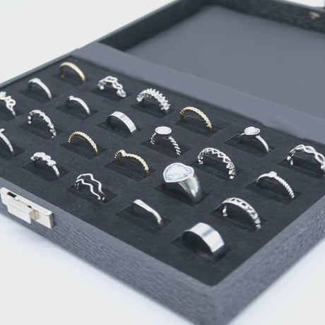 Black Leatherette Ring Travel Case - 24 Wide Slots