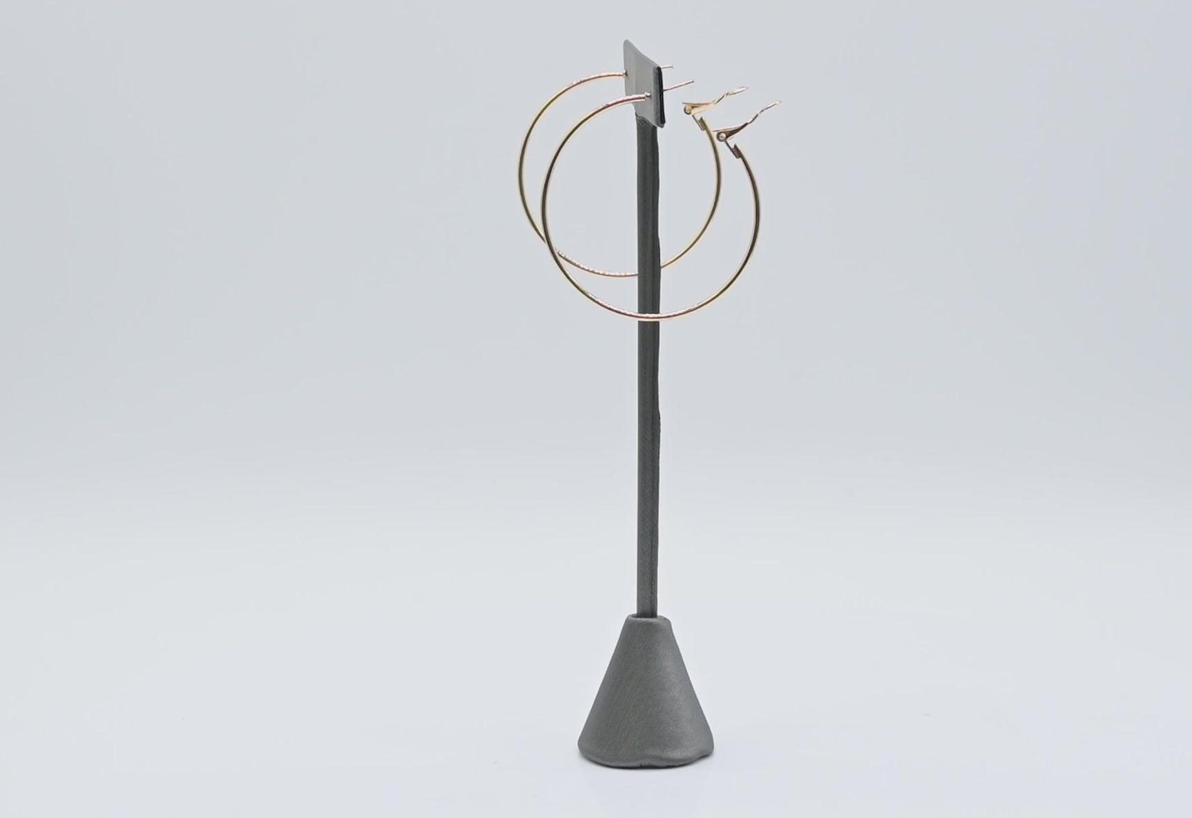 Description: The largest of our three sizes of earring T-stands, this steel grey display is weighted at the bottom for secure displaying. Try using all three sizes to add varied heights to your earring display. Works well with nearly all earring styles, including post, fishhook and French-style earrings. Elegant steel grey brings a modern feel to your displays. Excellent for displaying brightly-colored earrings. Jewelry not included.