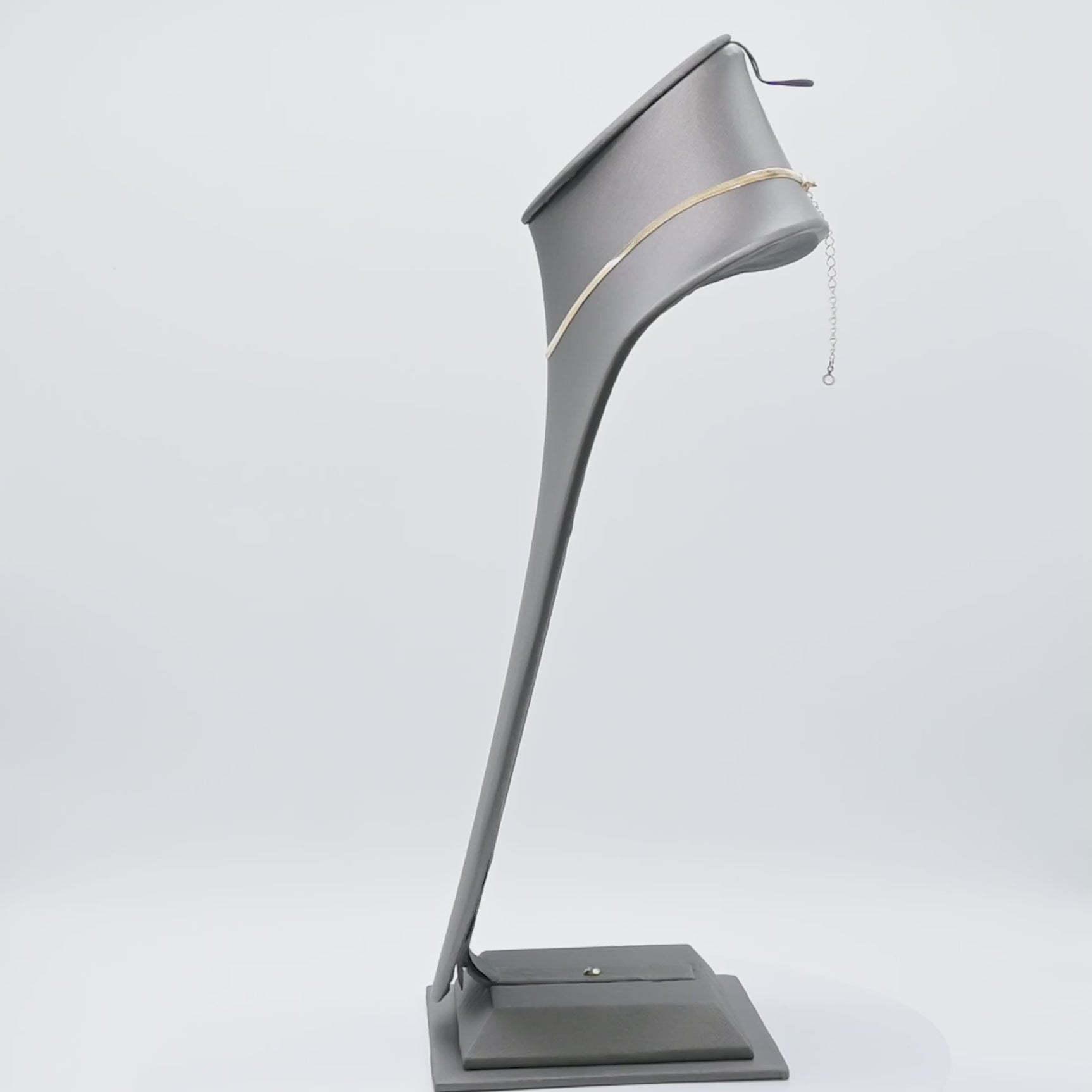 Use this striking display to display necklaces in your store! At just over 14" tall, this display will catch the eyes of your customers and draw them in to your displays. Great for long necklaces or focal-point pieces. Place necklace around neck portion and secure in back. Jewelry not included.
