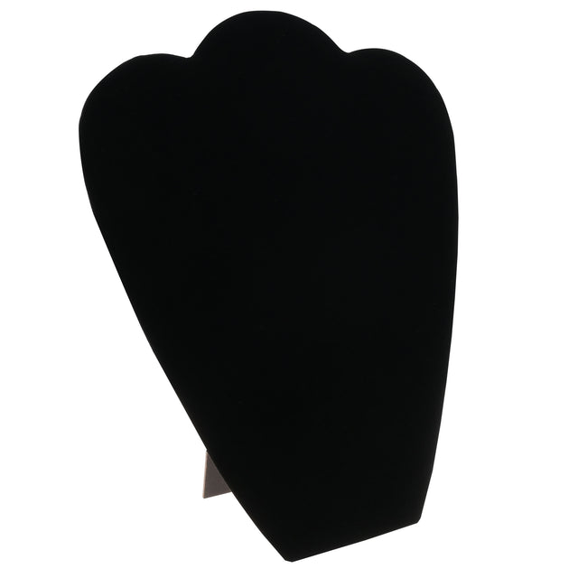 Showcase necklaces with effortless sophistication. This black velvet easel stand features a softly curved neck form that cradles beaded necklaces, pearl strands, and pendant chains — keeping them beautifully upright and retail-ready.
