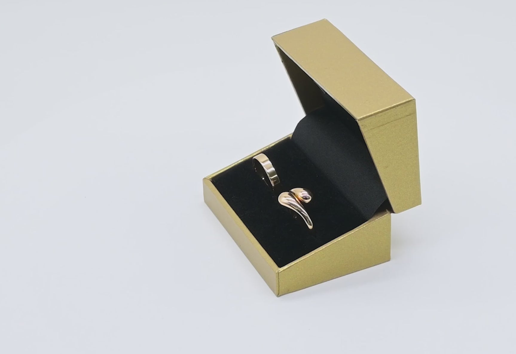 Metallic Gold, Dual Jewelry Ring Box. Sold in quantities of 24, making item LA05(GOLD) a great choice to bulk package, gift, and ship your jewelry rings. This item has a dual ring insert, allowing you to display and package 2 jewelry rings at once. Available for printing, allowing you to add your logo and brand your jewelry ring boxes. Tiered pricing does apply.