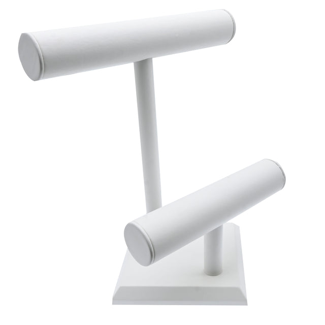 White Leatherette 2 Tier Jewelry T-Bar Display Stand