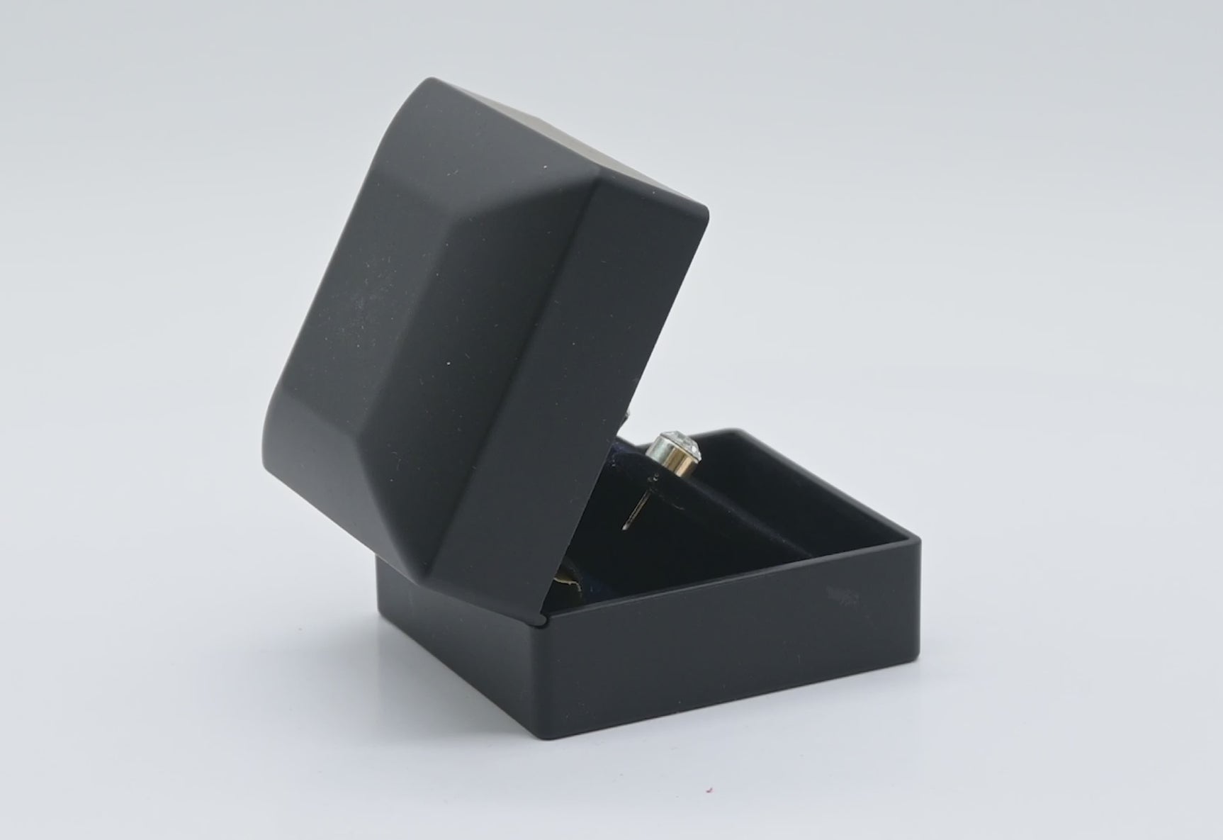 Add a touch of elegance to your jewelry presentation with the Black LED Earring Box with Velvet Insert. Designed with a sleek matte black satin exterior and a plush velvet interior, this box enhances the beauty of any earring set. The built-in LED light shines brightly when the lid is opened, highlighting the sparkle of your jewelry for an unforgettable presentation.