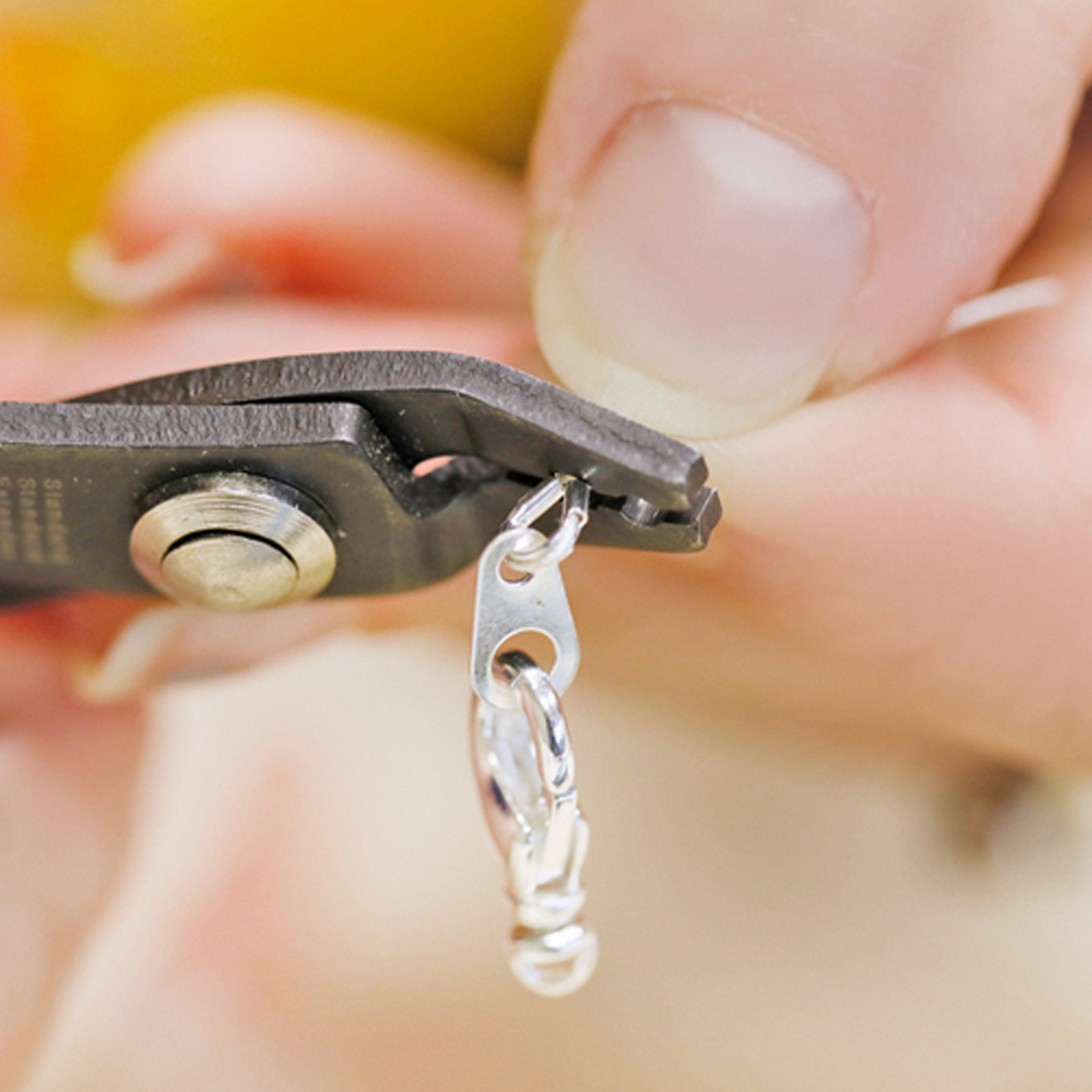 Place the crimp bead into the inner groove and squeeze to secure the wire.