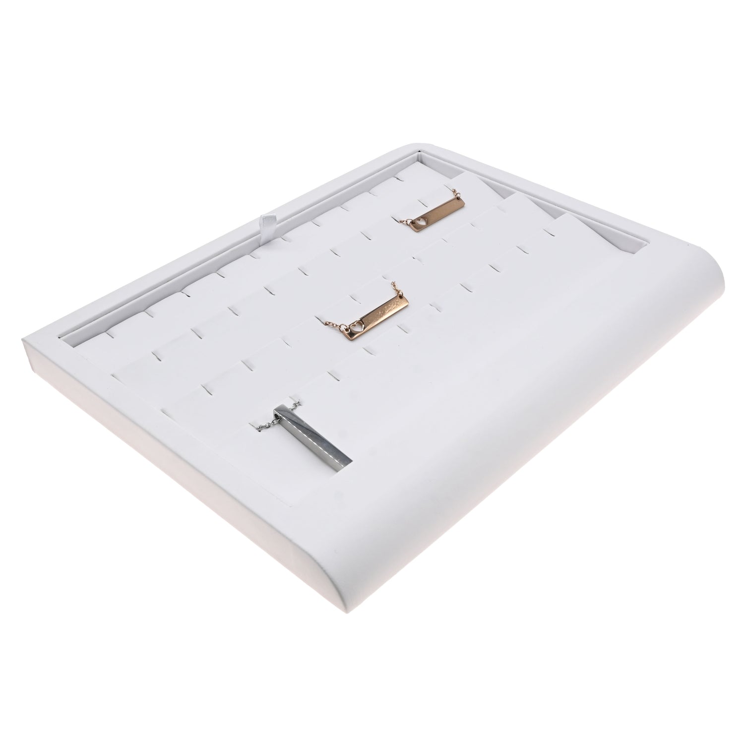 White Leatherette Jewelry Earring Display Tray, Holds 20 Pairs