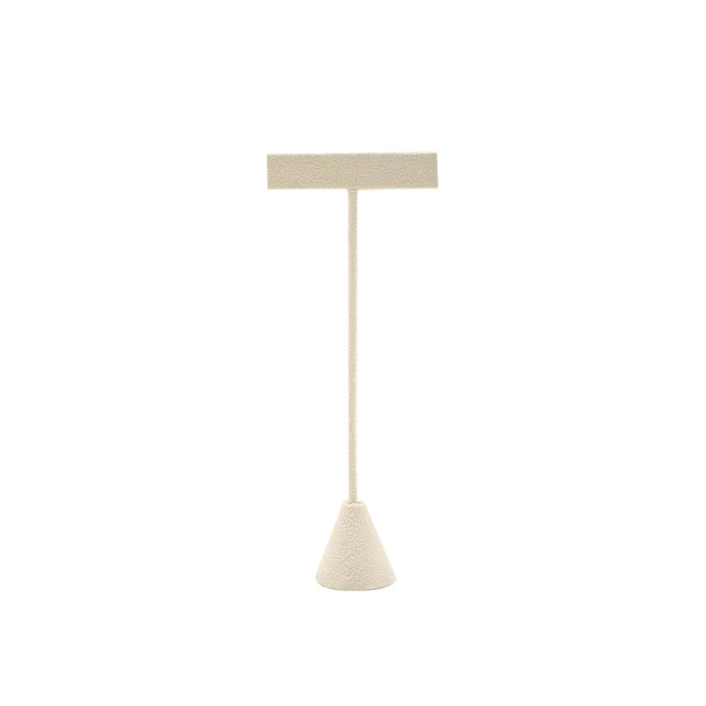 Our smallest-sized earring T-stand, this neutral beige faux suede display is weighted at the bottom for secure displaying. Try using all three sizes to add varied heights to your earring display. Works well with nearly all earring styles, including post, fishhook and French-style earrings. Soft faux suede brings a warm feel to your displays. Excellent for displaying almost any color and style of earrings. Jewelry not included.