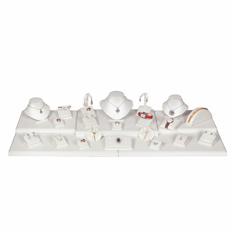 SKU: Set 19 (AW)Measures 30 1/4" w x 22" d x 15-1/4" t$25998Unit price /UnavailableBuy More Save More 5 3% Off ($252.18) 10 5% Off ($246.98) 10-Piece White Leatherette Jewelry Display Set